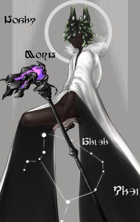 A reincarnating entity of unknown origin who came into being shortly after the 13th became the Void. By latching onto souls rising toward the surface of the aethereal sea, they participate in the living world, and upon death the soul is released unharmed.Memories that would normally dissipate into the sea stay with Ashlesha. As a result, they remember every soul they have ever touched, every being they have been, and everything they have ever experienced.Their primary concern in all times is to find out what they are, why they were born, and more importantly how they can stop, but even after so many astral and umbral eras, only two entities have given them any insight at all:Bahamut, first of the Firstbrood, perceived them beyond flesh and aether before Meracydia's fall.The Second's Oracle of Fire bequeathed them both the name 'Ashlesha' and a guiding star the Source knew as Sabik before their world was lost to Rejoining.